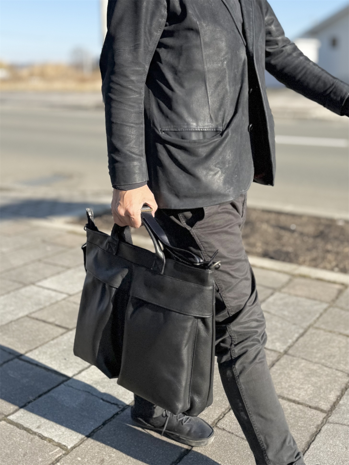 特に大容量バッグになると、革自体の重量が負担になることも。