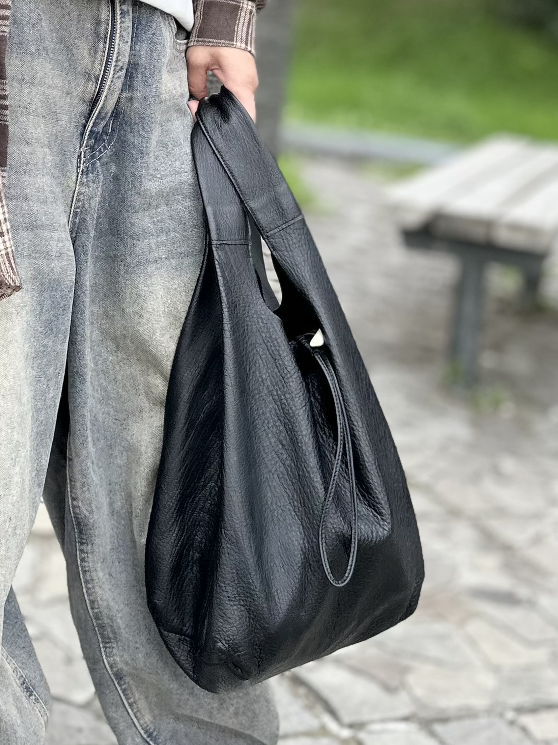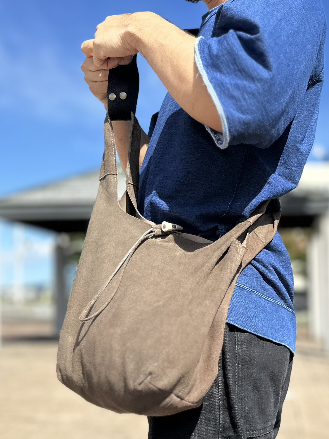 【休日編】軽やかで上品。鹿革トートが街に馴染む